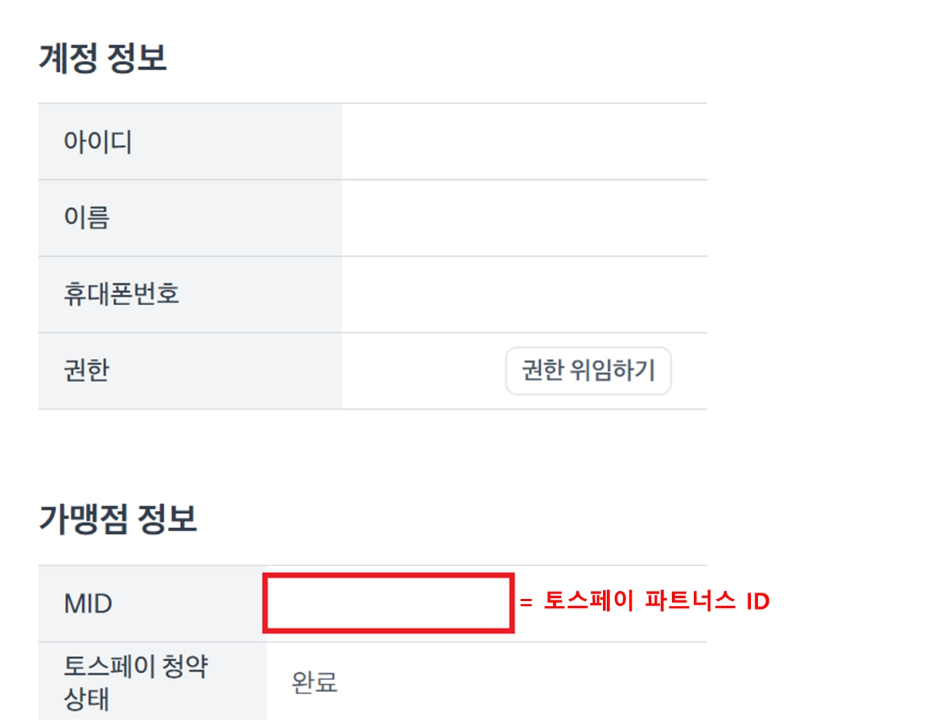 토스쇼핑에 입점하신 담당자님께서는 토스쇼핑 파트너스에서 MID를 확인해주세요.