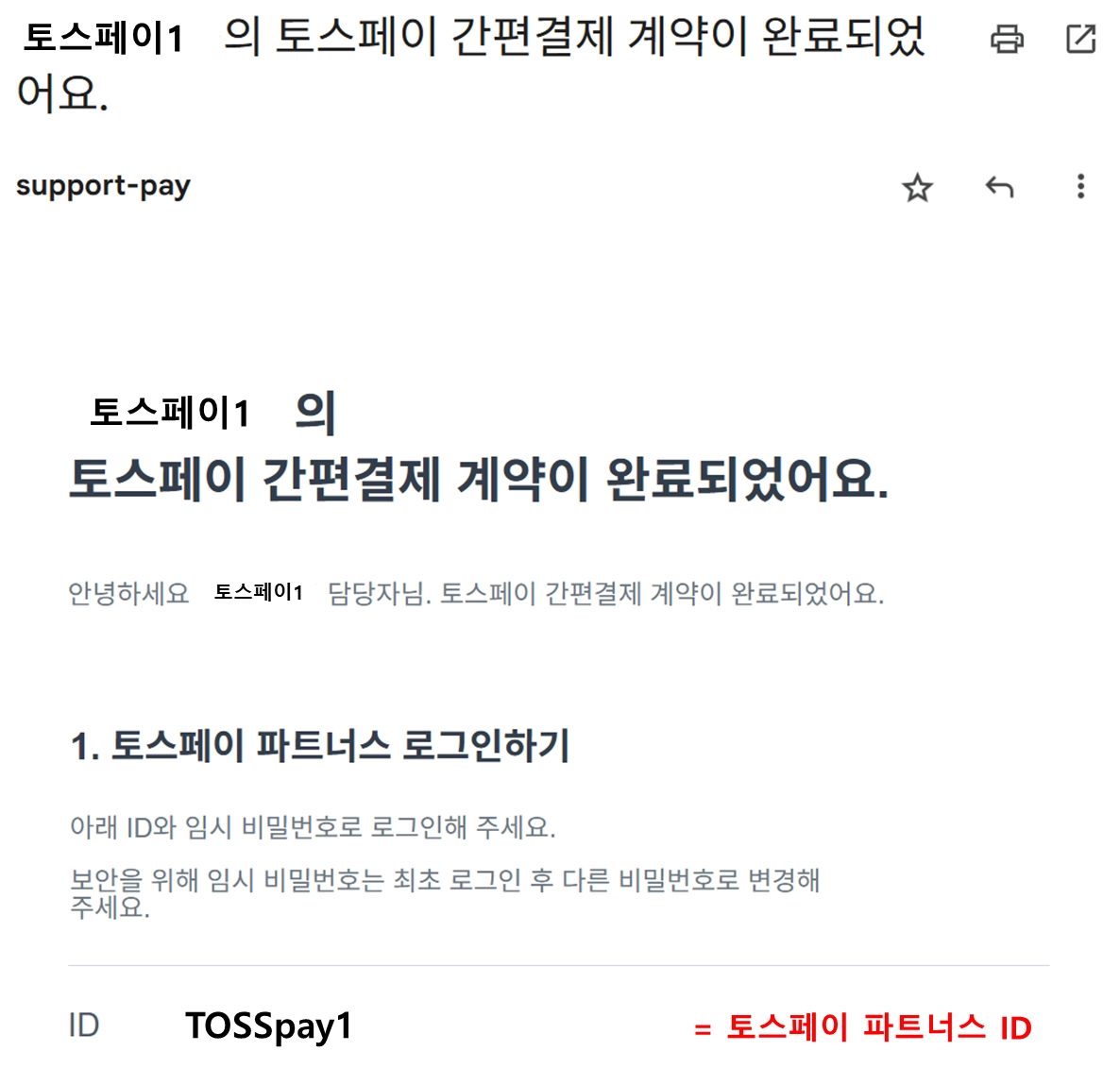 토스페이 파트너스 로그인 ID는 계약(입점)시점 부여된 MID 로 로그인 해주셔야해요.