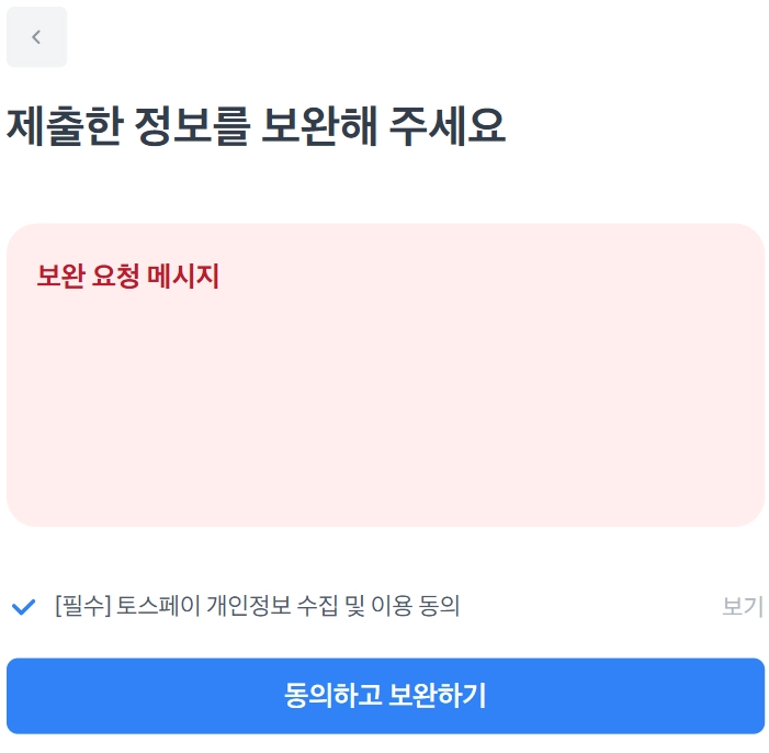 보완 요청 메시지를 확인해주시고, [동의하고 보완하기] 버튼을 눌러 보완해주세요.