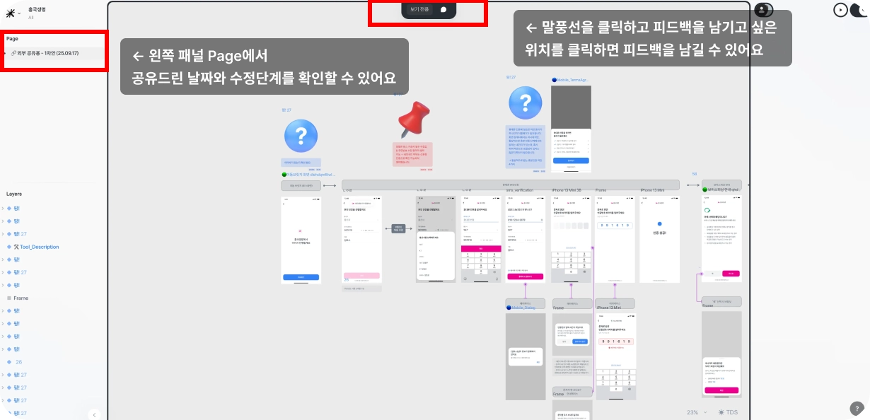 “몇 번째 화면, 어떤 위치”를 따로 설명하지 않아도, 확인하신 지점에 바로 코멘트를 남기실 수 있습니다.