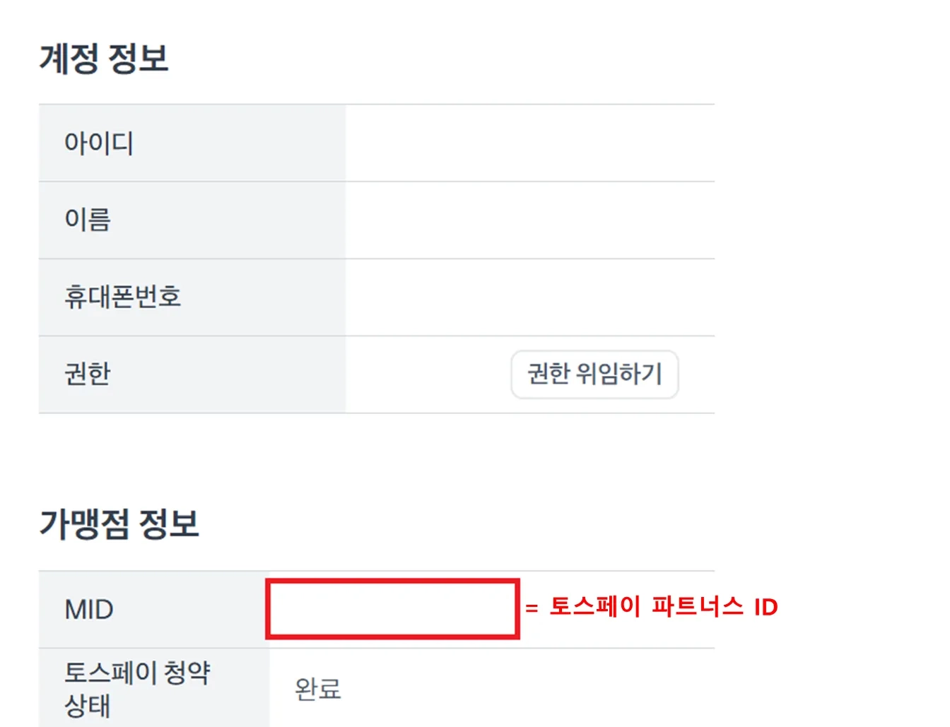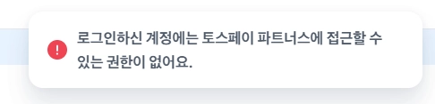 로그인하신 계정에는 토스페이 파트너스에 접근할 수 있는 권한이 없어요.