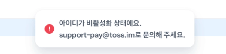 아이디가 비활성화 상태예요. support-pay@toss.im로 문의해 주세요.