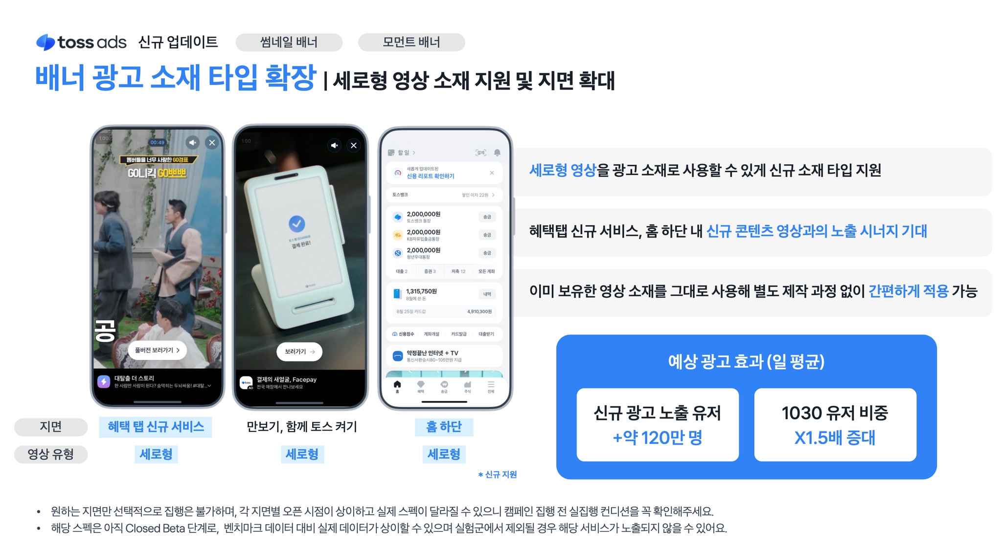 안녕하세요. 토스 애즈의 배너 광고 지면 확장이 있어 공유드립니다.