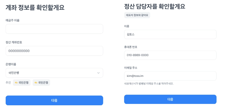 정산 담당자의 정보를 입력해주세요.