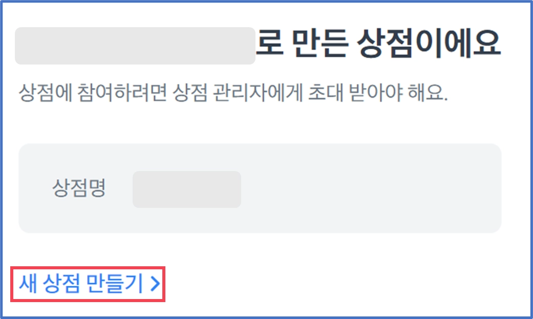 사업자등록번호를 입력한 뒤, 새 상점 만들기를 눌러 입점 계약과 동일하게 신청해 주세요.
