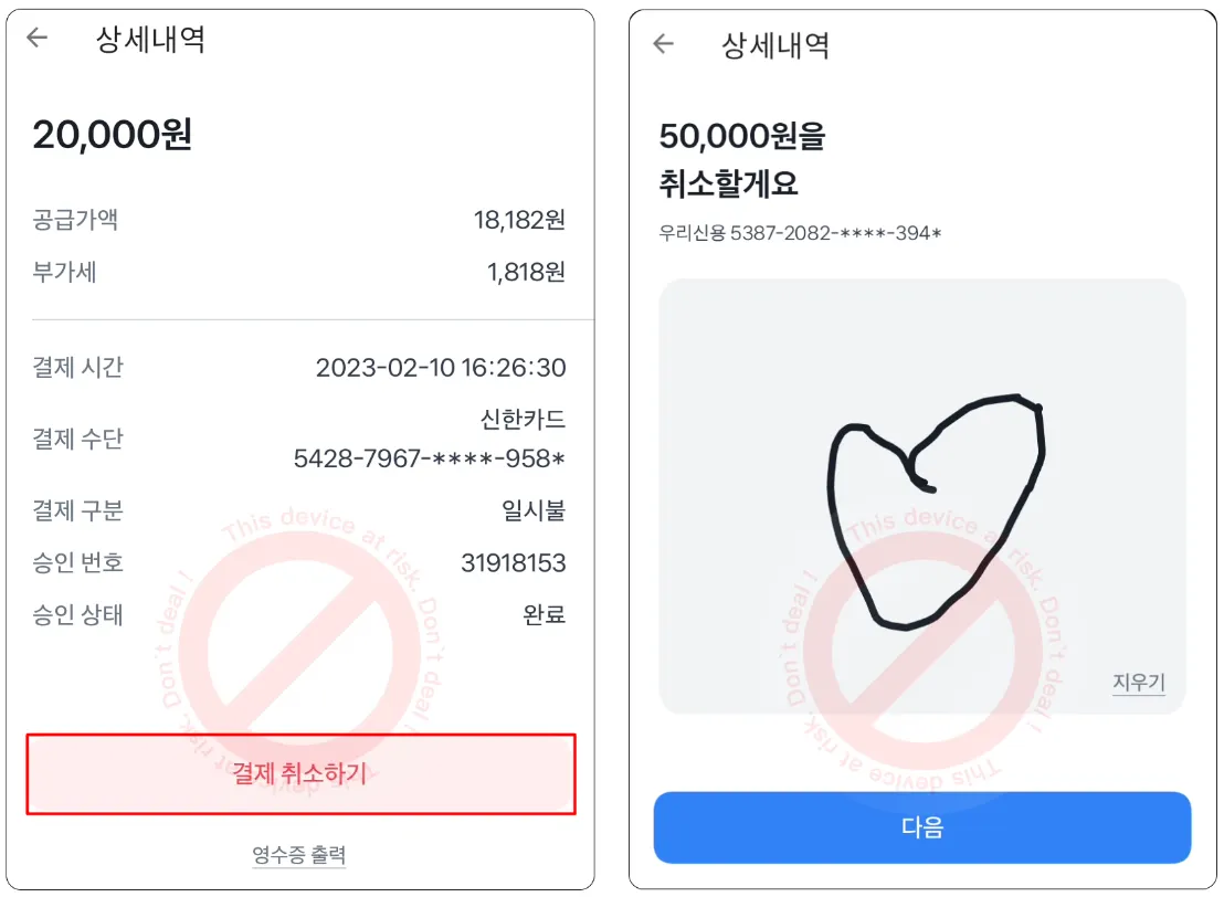 입력한 후 결제 취소가 최종으로 완료돼요.