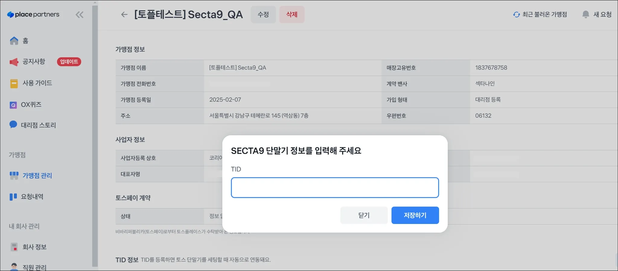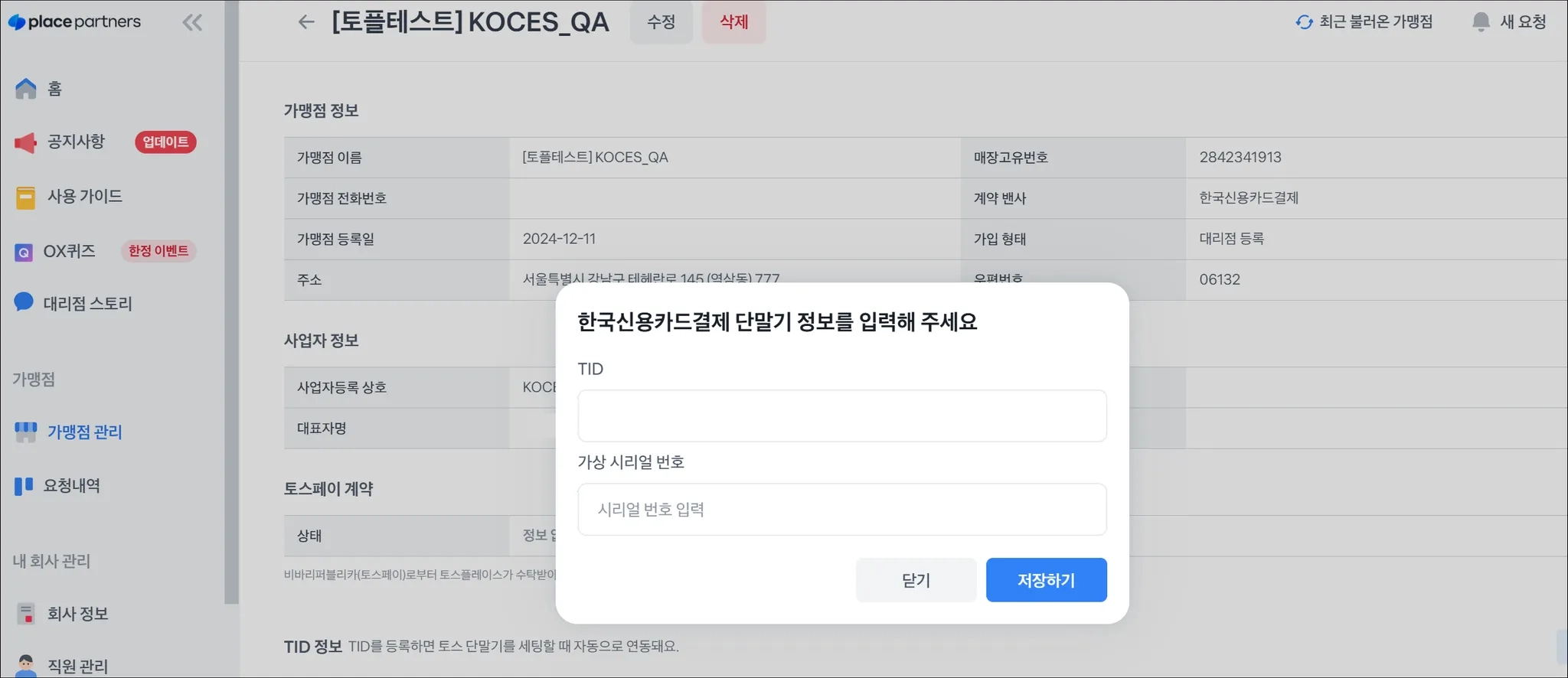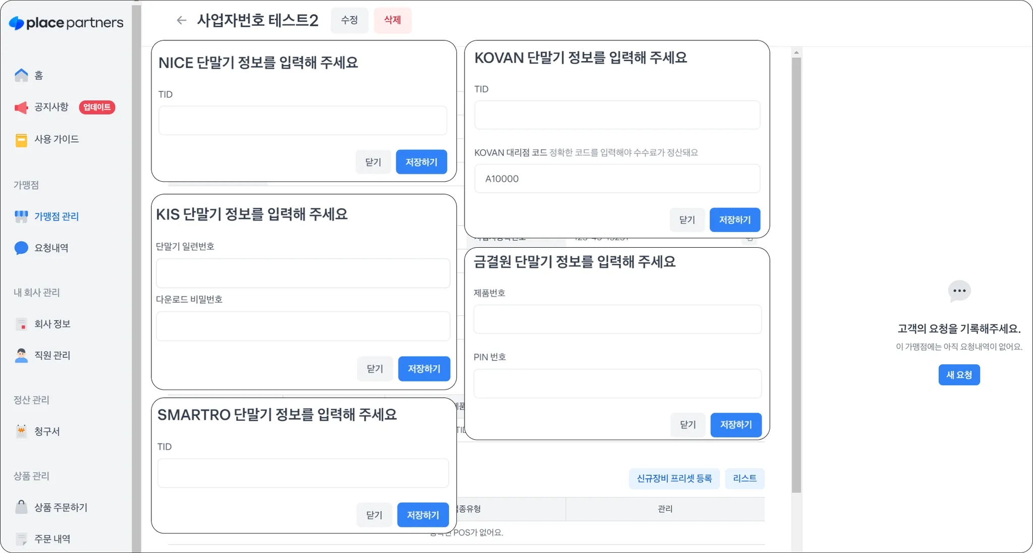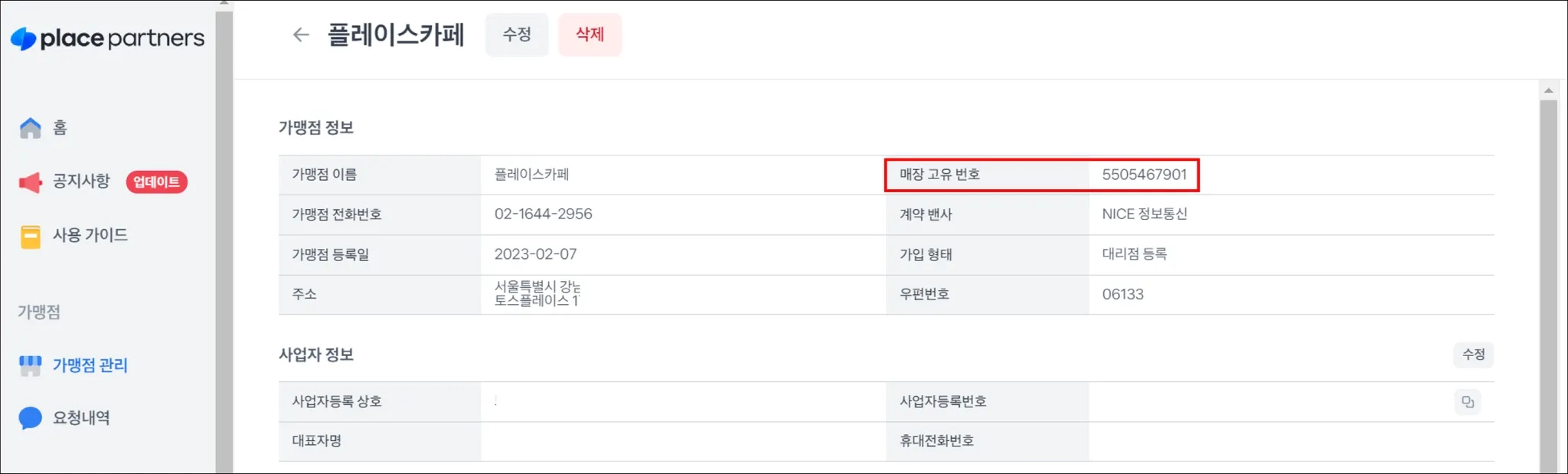 신규 가맹점 설치 시 플레이스 파트너스에서 반드시 등록 과정이 필요해요.