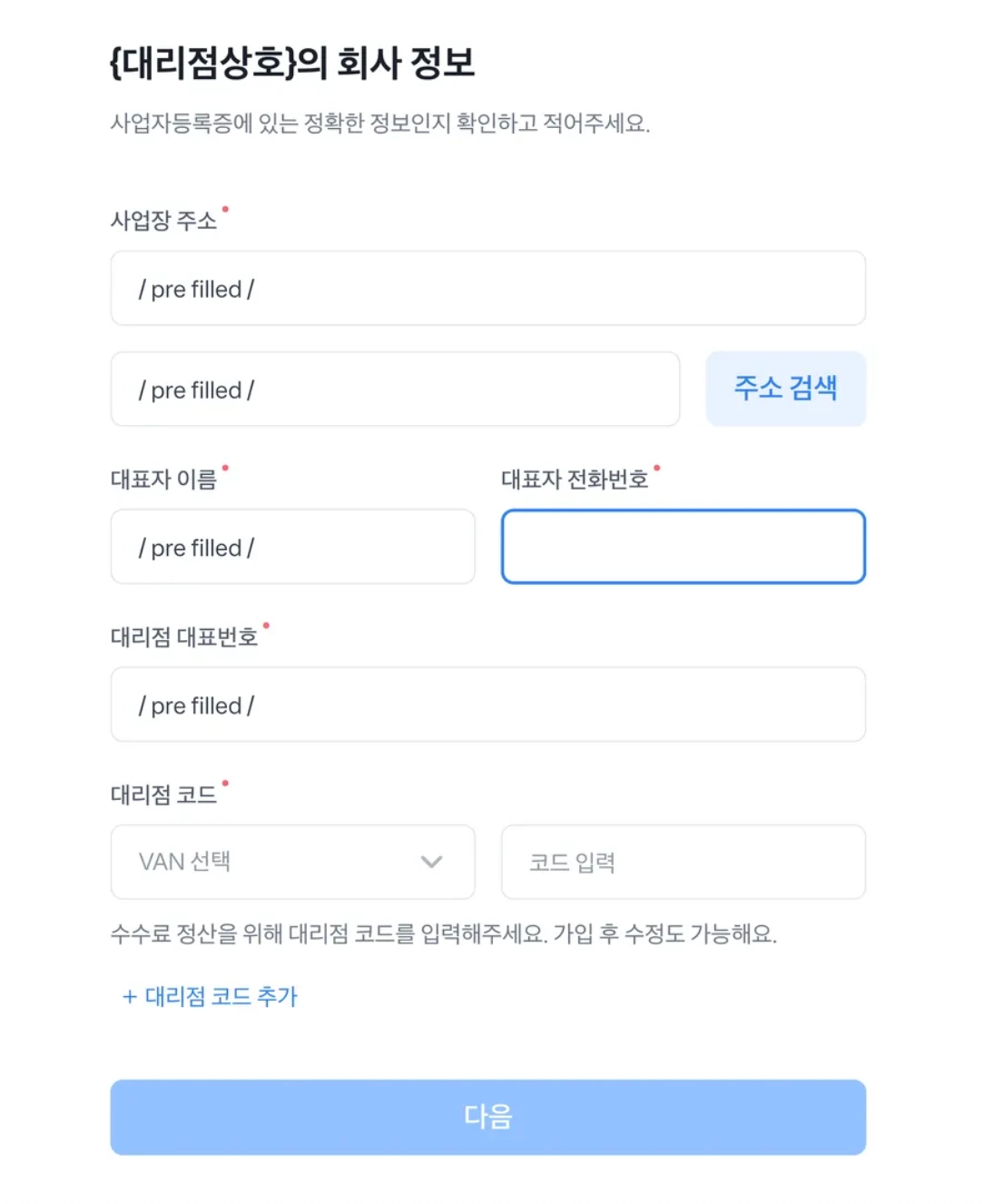 매장에 해당하는 VAN 정보를 입력해주세요.