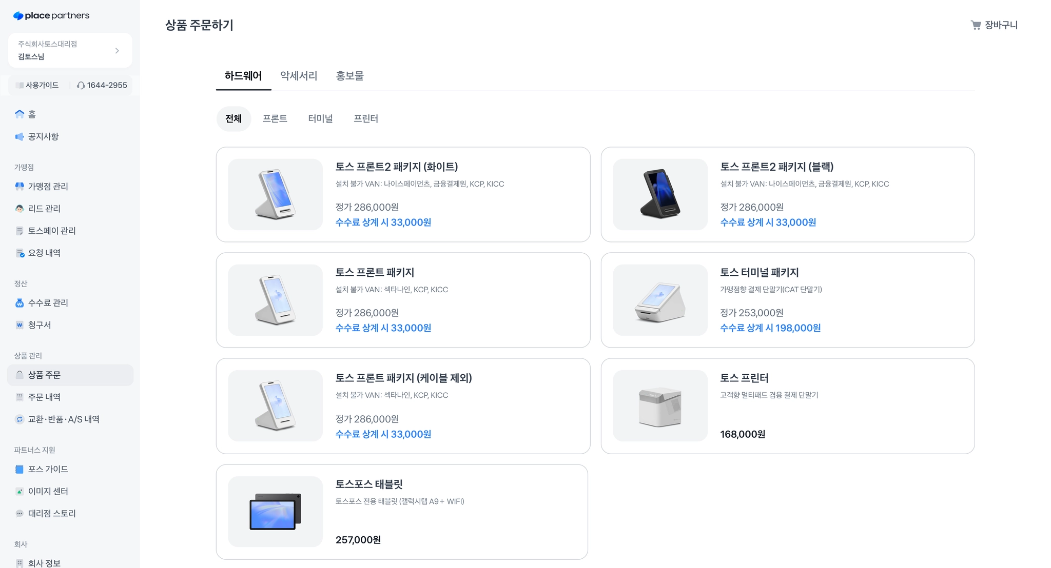 플레이스 파트너스 → 상품 주문에서 상품을 주문할 수 있어요.