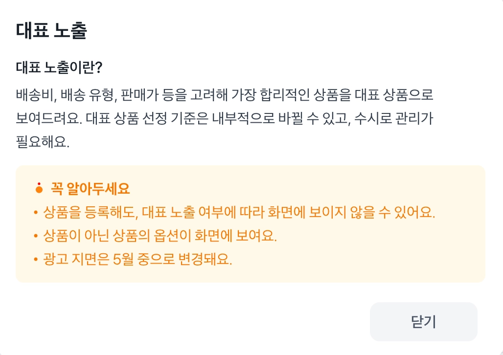 대표가격이 대표노출이 아닌 경우 현재 대표노출가를 확인하여, 가격을 낮춰주세요.