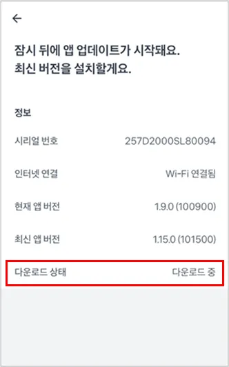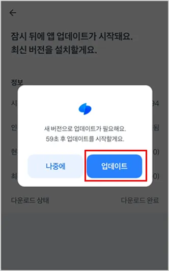 앱 버전을 선택하고, 업데이트를 위해 자동 다운로드가 진행될 수 있도록 기다려주세요.