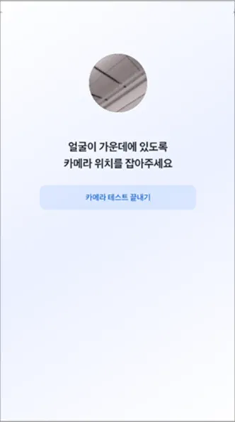 모든 과정이 끝나면 화면에 페이스페이를 위한 카메라 테스트하기 버튼을 확인하실 수 있어요. 카메라 테스트를 진행해보세요.