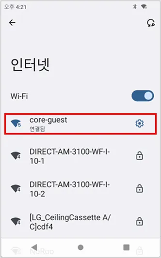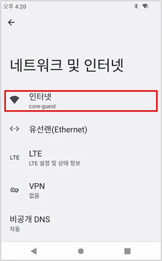 인터넷 연결을 선택하고, 인터넷 중 설정하고자 하는 Wi-Fi를 선택해주세요.
