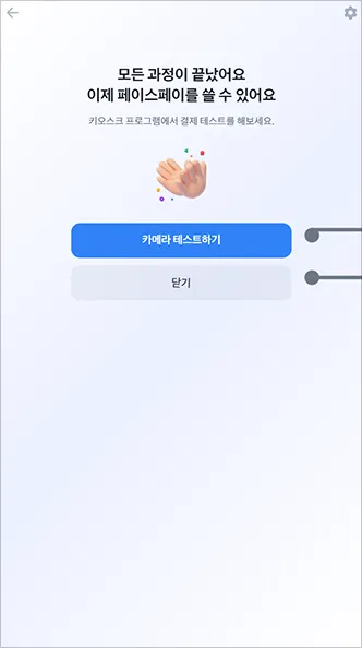 카메라 테스트가 완료되면 모든 과정이 끝나요. 이제 페이스페이 결제가 가능해요!7.