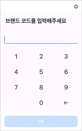 메인 화면의 브랜드 코드 입력 값에서 아래 값을 입력해주세요.