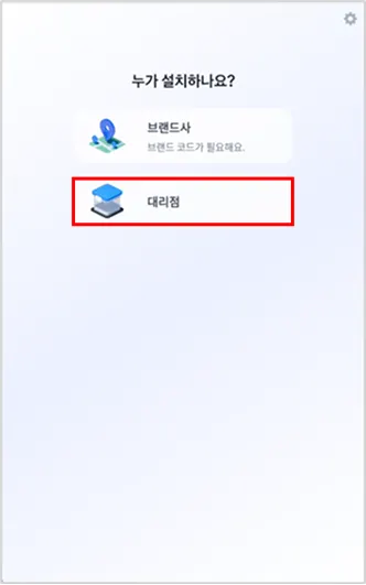설치 주체를 하단의 대리점 으로 선택해주세요.