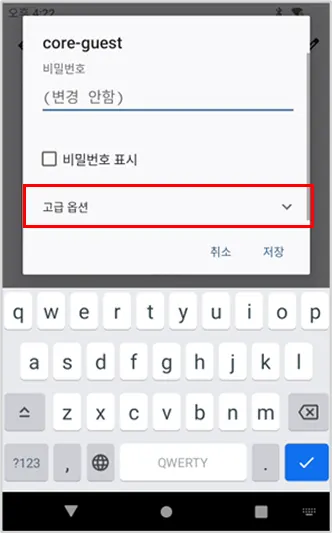 고급 옵션을 선택하고, IP 설정에서 고정 을 선택해주세요.