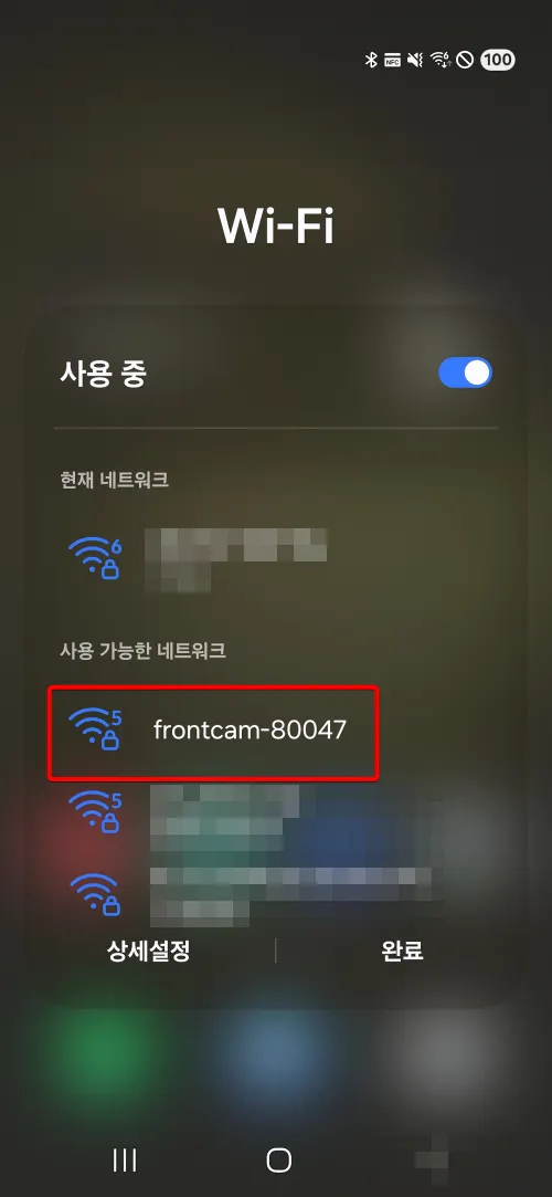 Android 휴대폰/태블릿에서 설정을 진행하고자 하는 프론트 캠 기기의 Wi-Fi를 검색 및 연결해주세요.