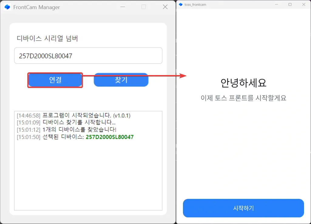 FrontCamManager.exe 파일을 실행시켜주세요.