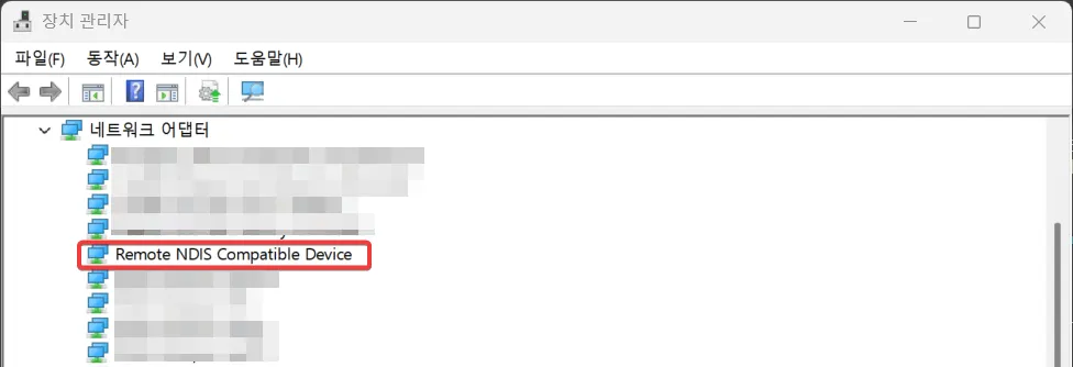 왼쪽 이미지처럼, 윈도우의 장치관리자에서 해당 장치가 인식된 것을 확인해주세요.