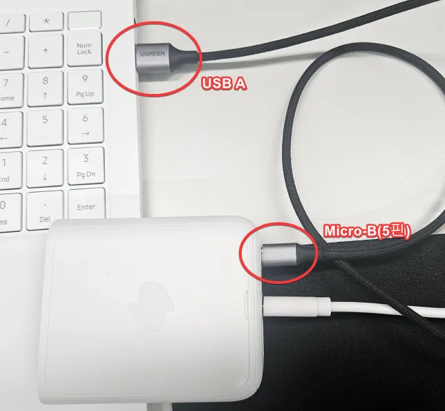 프론트 캠과 키오스크를 USB A to Mircro-B(5핀) 케이블로 연결해주세요. 프론트캠의 단자는 PC 포트를 사용해주세요.