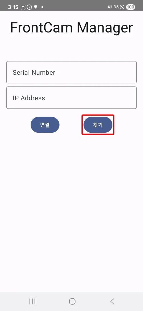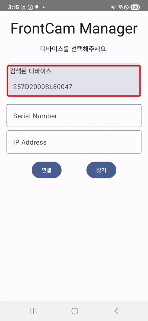 네트워크를 통해 프론트캠이 연결된 상태에서 찾기 버튼을 선택해주세요.