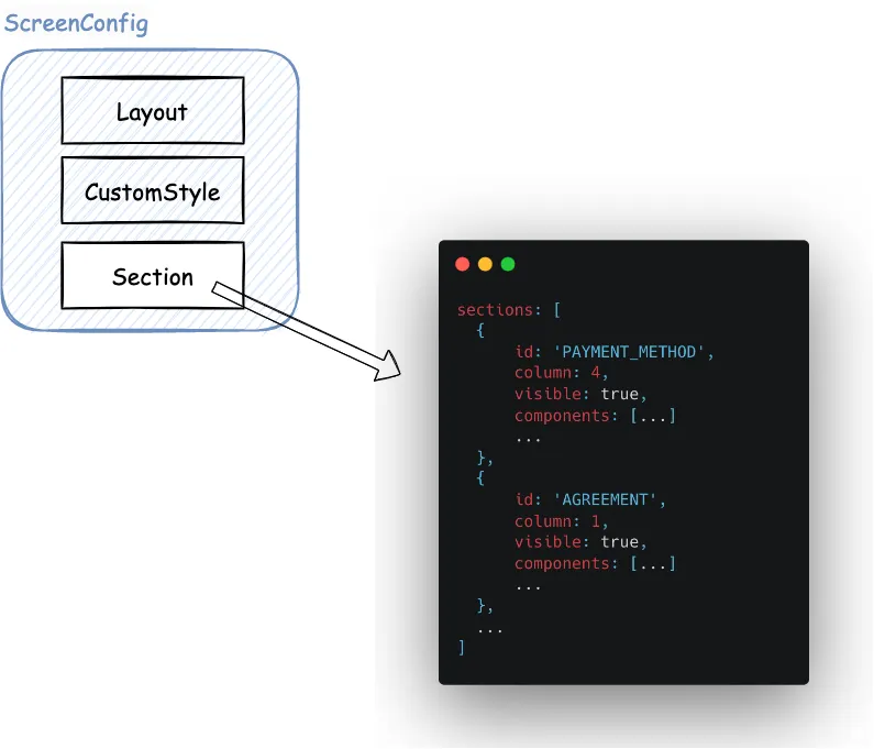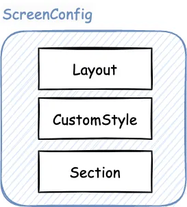 ScreenConfig의 내부는 Layout, CustomStyle, Section으로 나뉩니다.