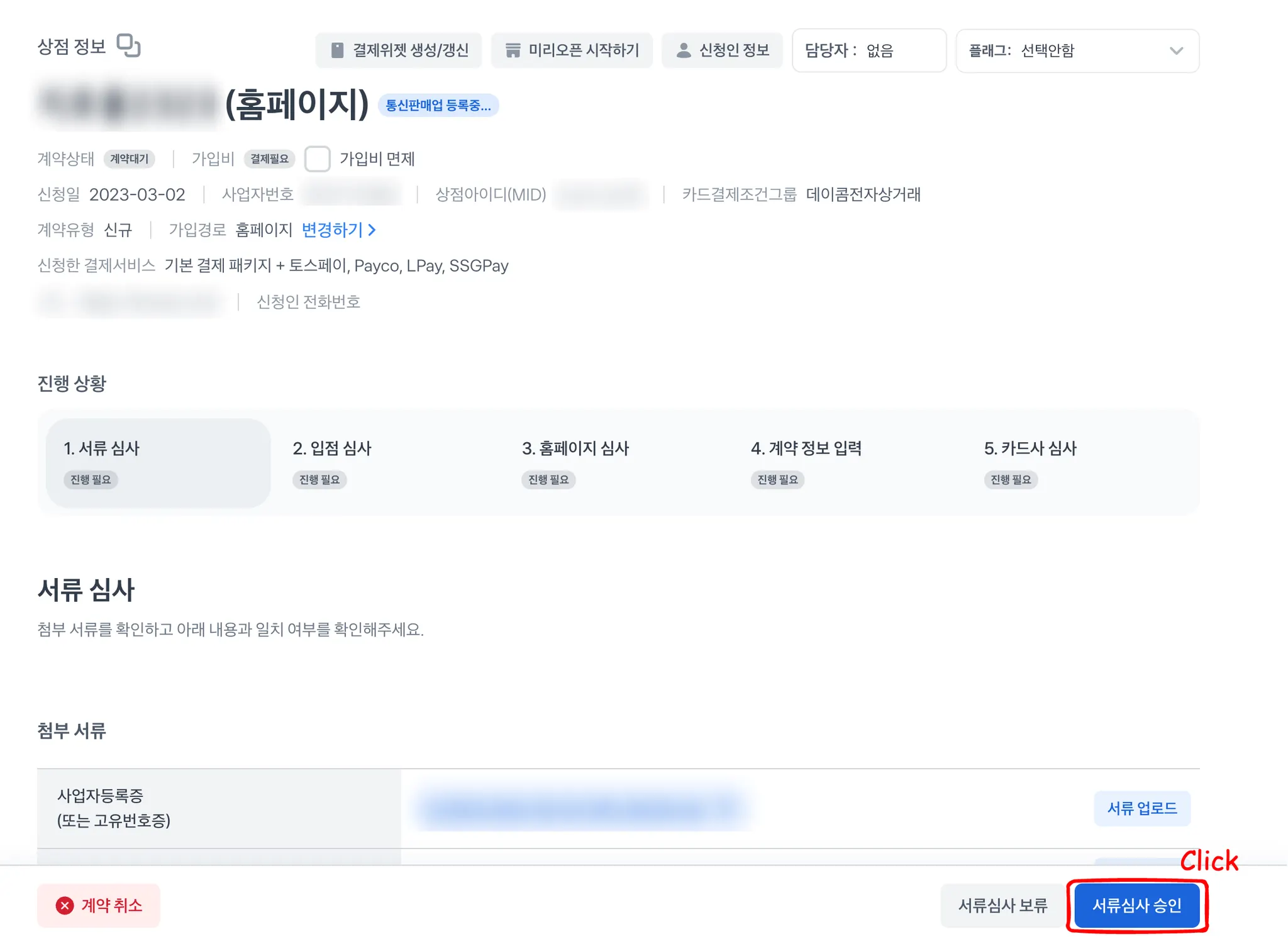 신청 문의에 따라 해당 상점에 결제위젯 AdminSetting과 ScreenConfig를 생성합니다.