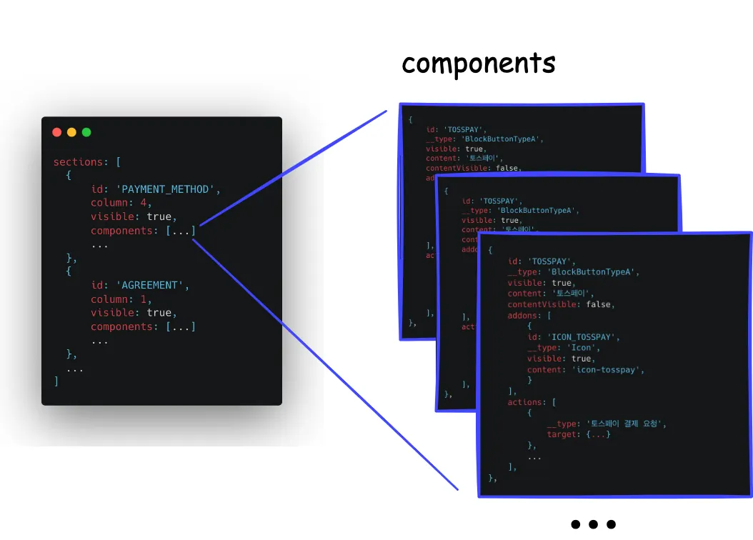 Component는 __type에 따라 각각 다른 UI를 렌더링합니다. 같은 기능을 가진 결제수단 Component여도 __type에 따라 UI가 달라집니다.