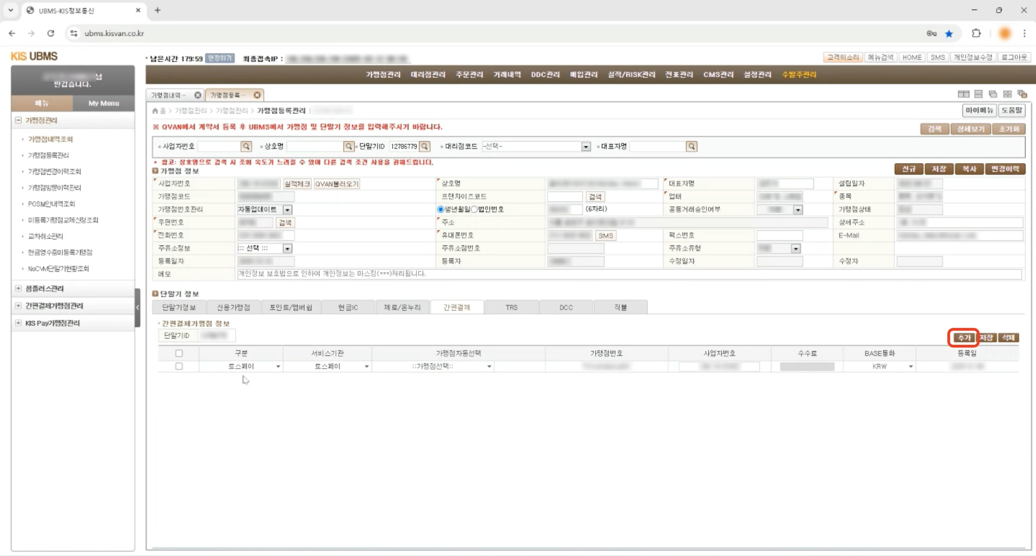 2. 가맹점 > 가맹점정보등록/조회 > 가맹점등록/수정/해지 메뉴에 접속해주세요.
