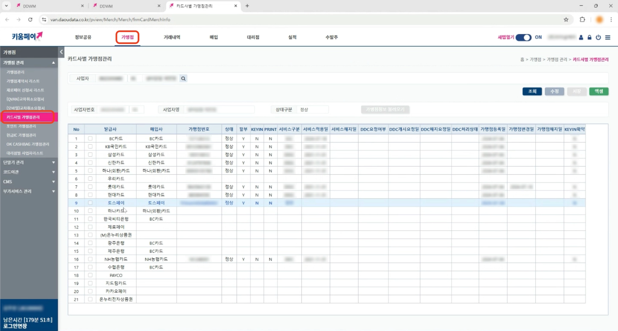 2. 가맹점 > 카드사별 가맹점관리 메뉴에 접속해주세요.