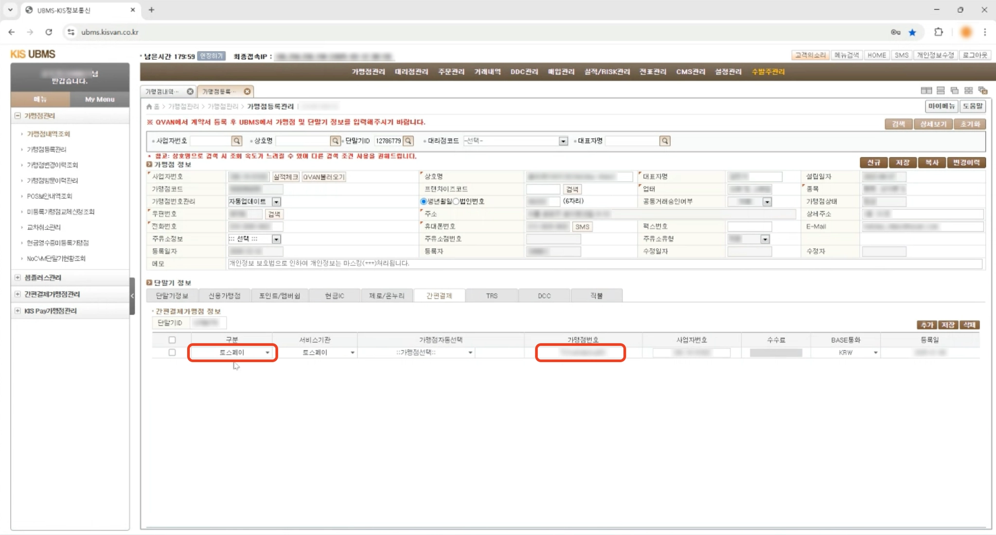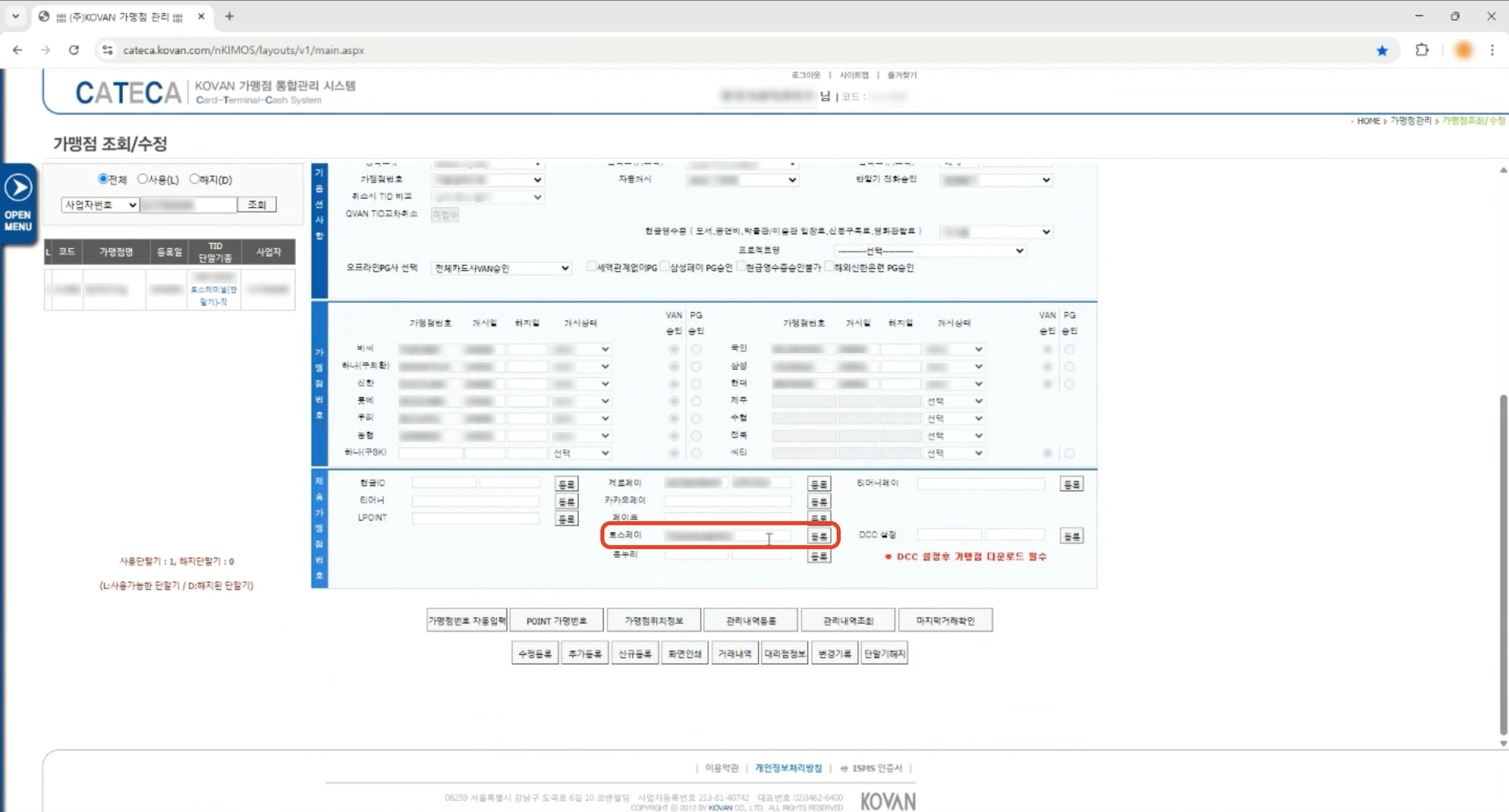 밴사 시스템에 토스페이 가맹점 번호 등록하기