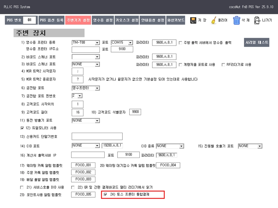 외식 버전은 31.2509.1.0 버전 이상으로 포스 업데이트가 필요해요.