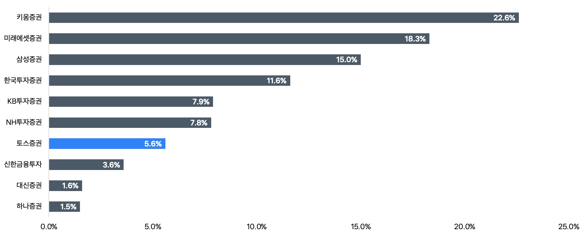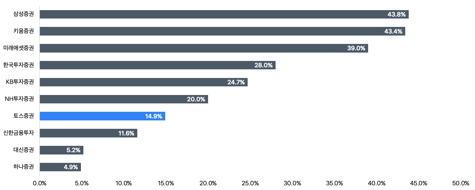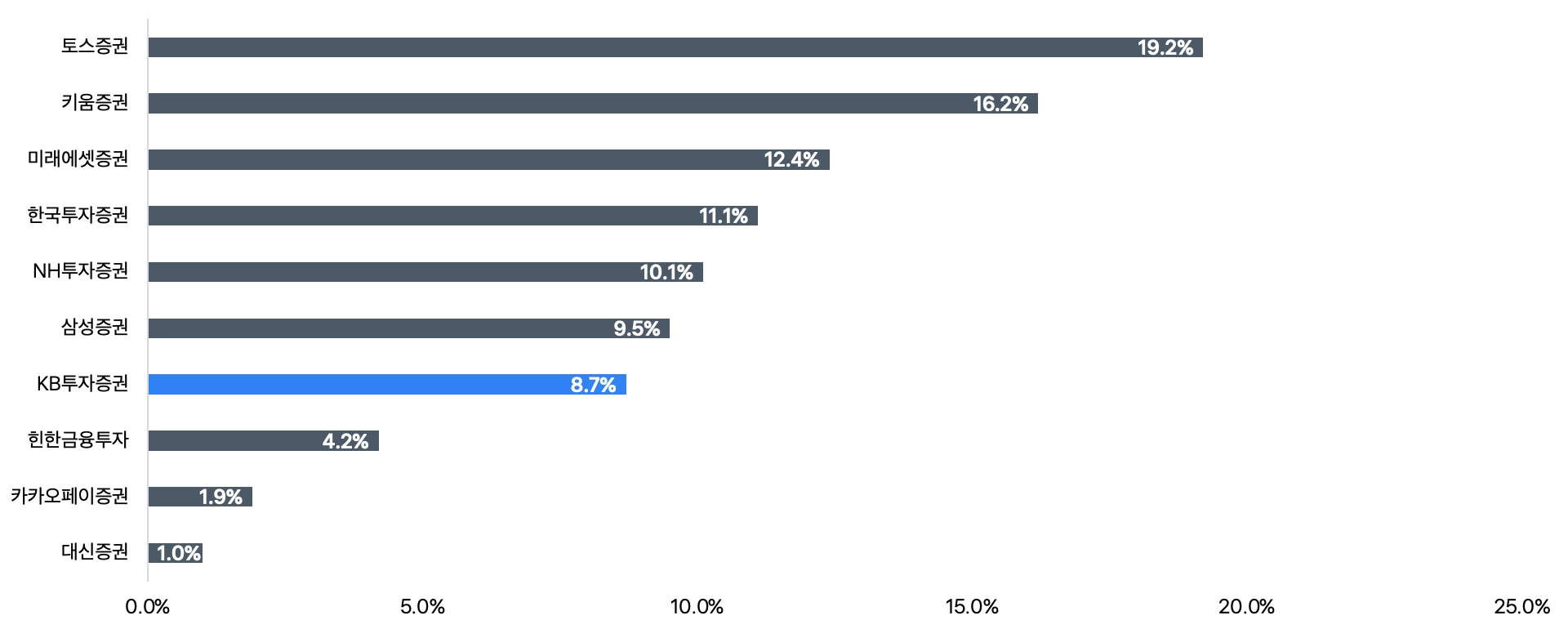 지난 23년 9월, 신한금융투자에 밀려 (5.1%) 8위를 차지했으나, 2% 차이로 앞서며 순위 상승