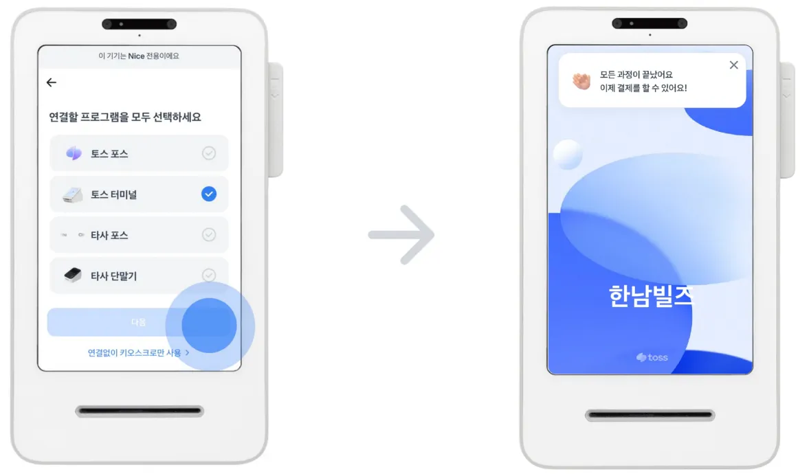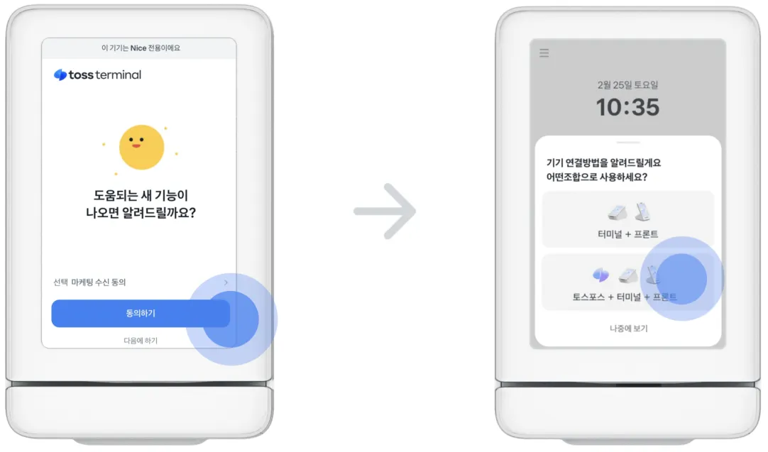 토스 프론트2 설치 시, 반드시 네트워크 연결 후 OS 와 프론트 앱이 최신 버전으로 업데이트될 수 있도록 준비해주세요.