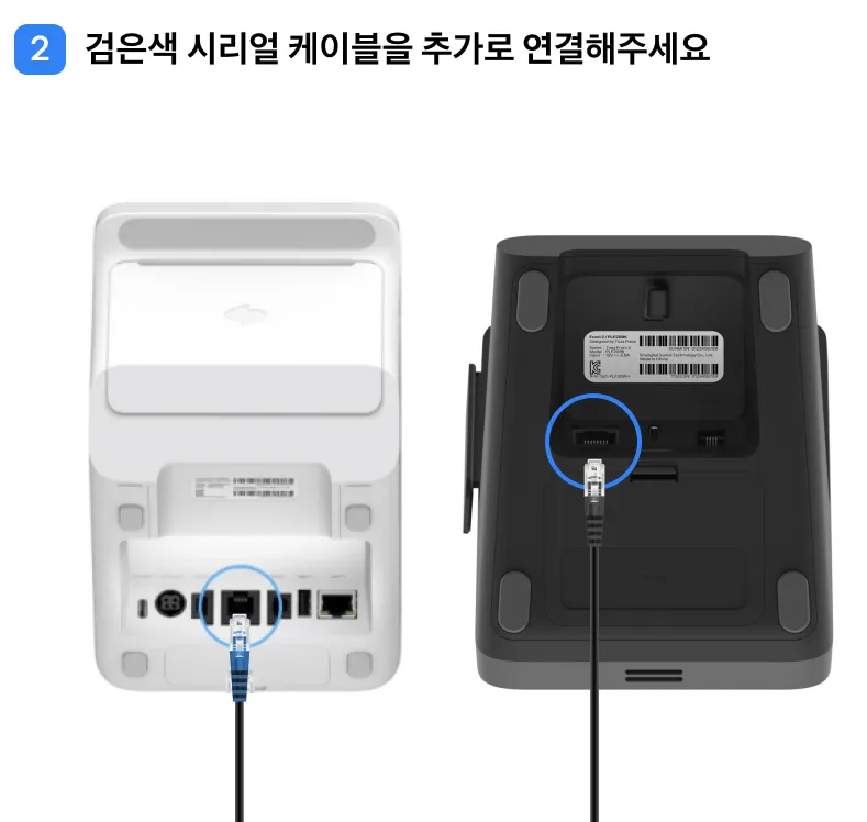 유선 랜 1개만 있는 매장에서 유선으로 터미널-프론트를 설치하실 때에는 연결을 위한 C2C 케이블이 필요해요.