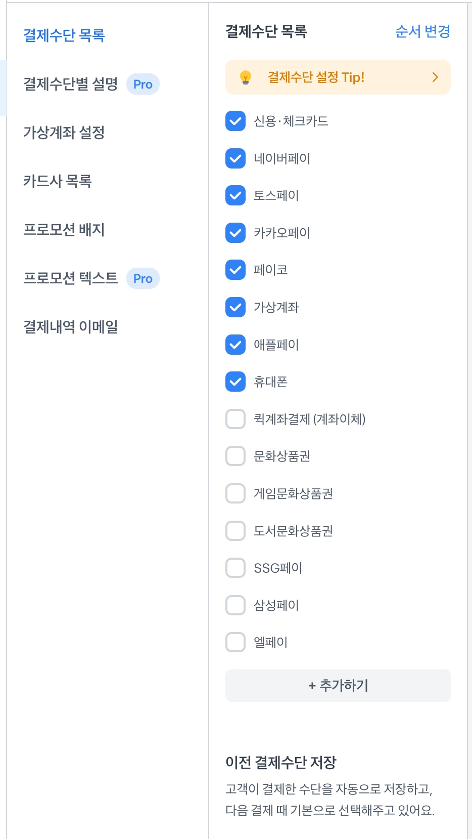 빼는 것도 쉽기 때문에 페이코 같은 애매한 결제수단을 쉽게 빼는 의사결정도 가능하다. 이렇게 어필이 가능.