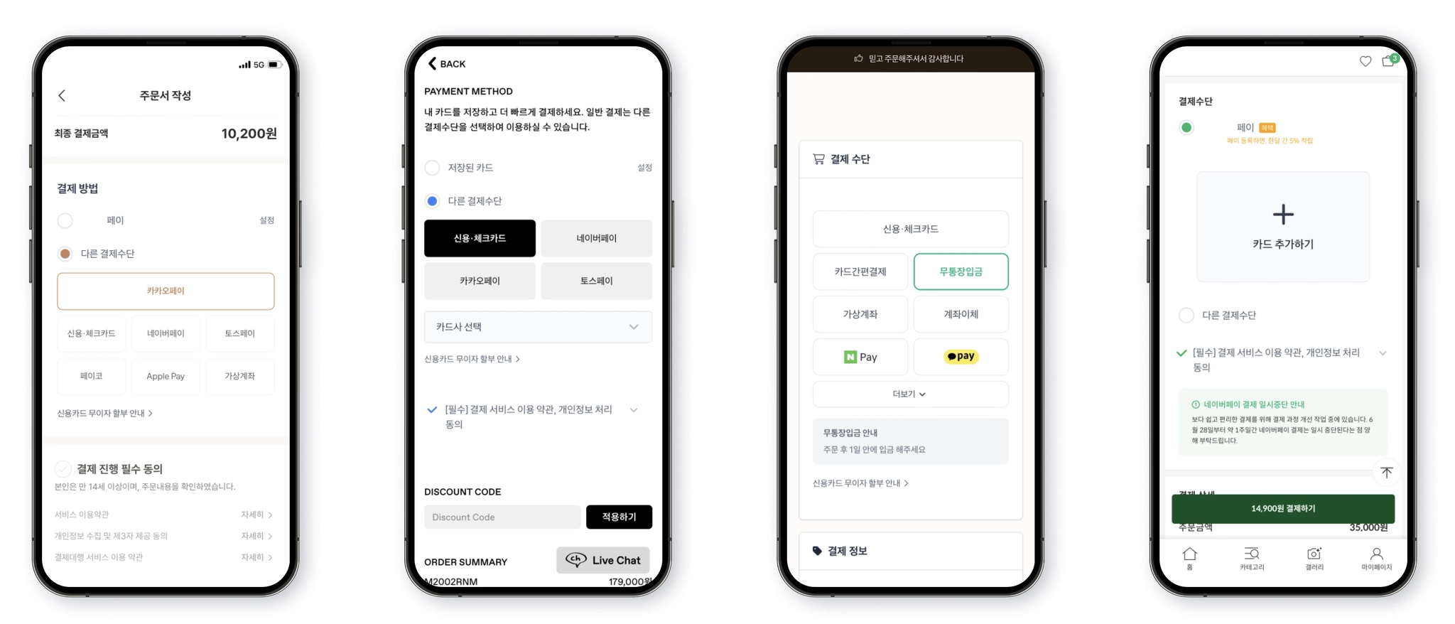처음에 만든 결제영역의 모습은 그냥 감으로 만든 것. 어떤 결제수단이 필요한지, 필요 없는지 모름