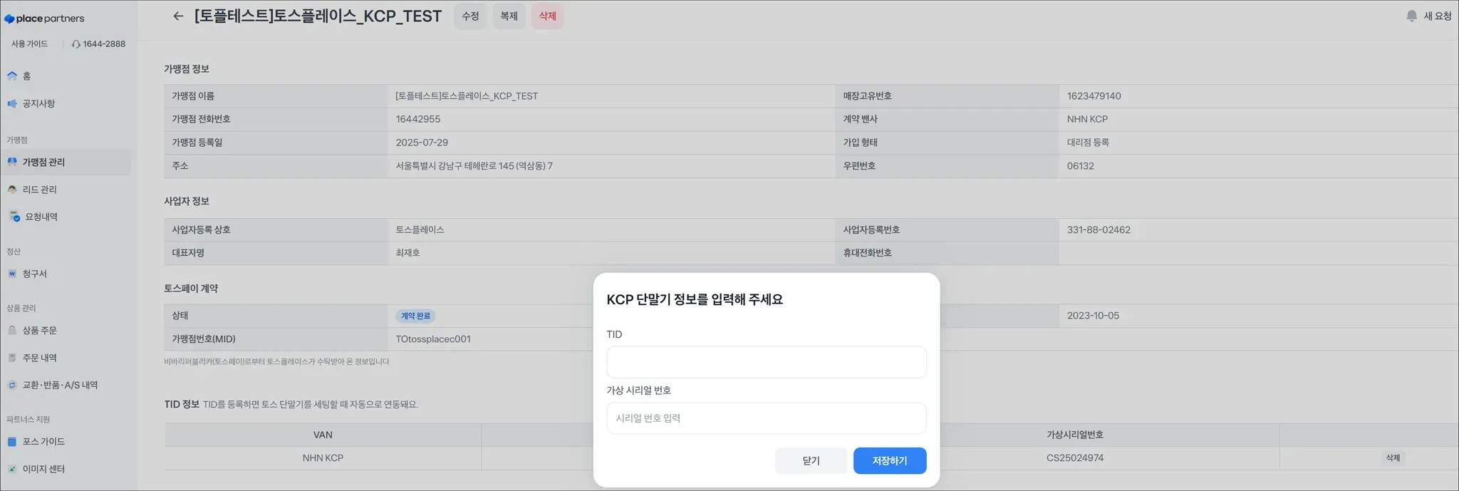 신규 가맹점 설치 시 플레이스 파트너스에서 반드시 등록 과정이 필요해요.