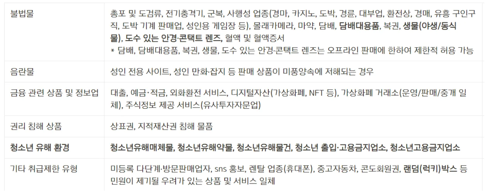 관련 법령 및 카드사/은행의 정책상 신청 제한될 수 있는 업종은 아래와 같아요.