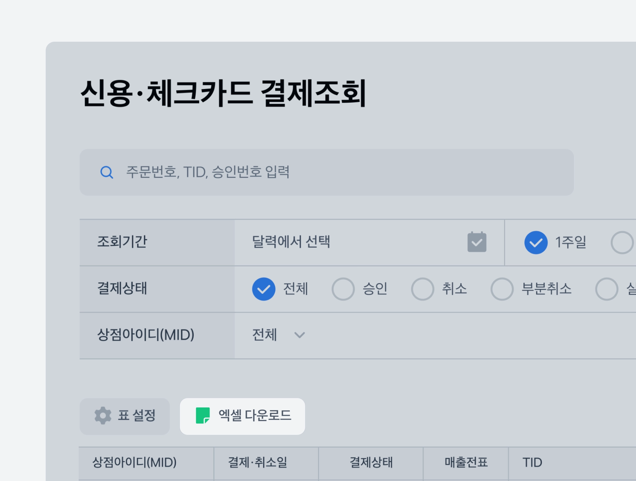 03. 정산내역, 카드 결제조회 사용성 개선