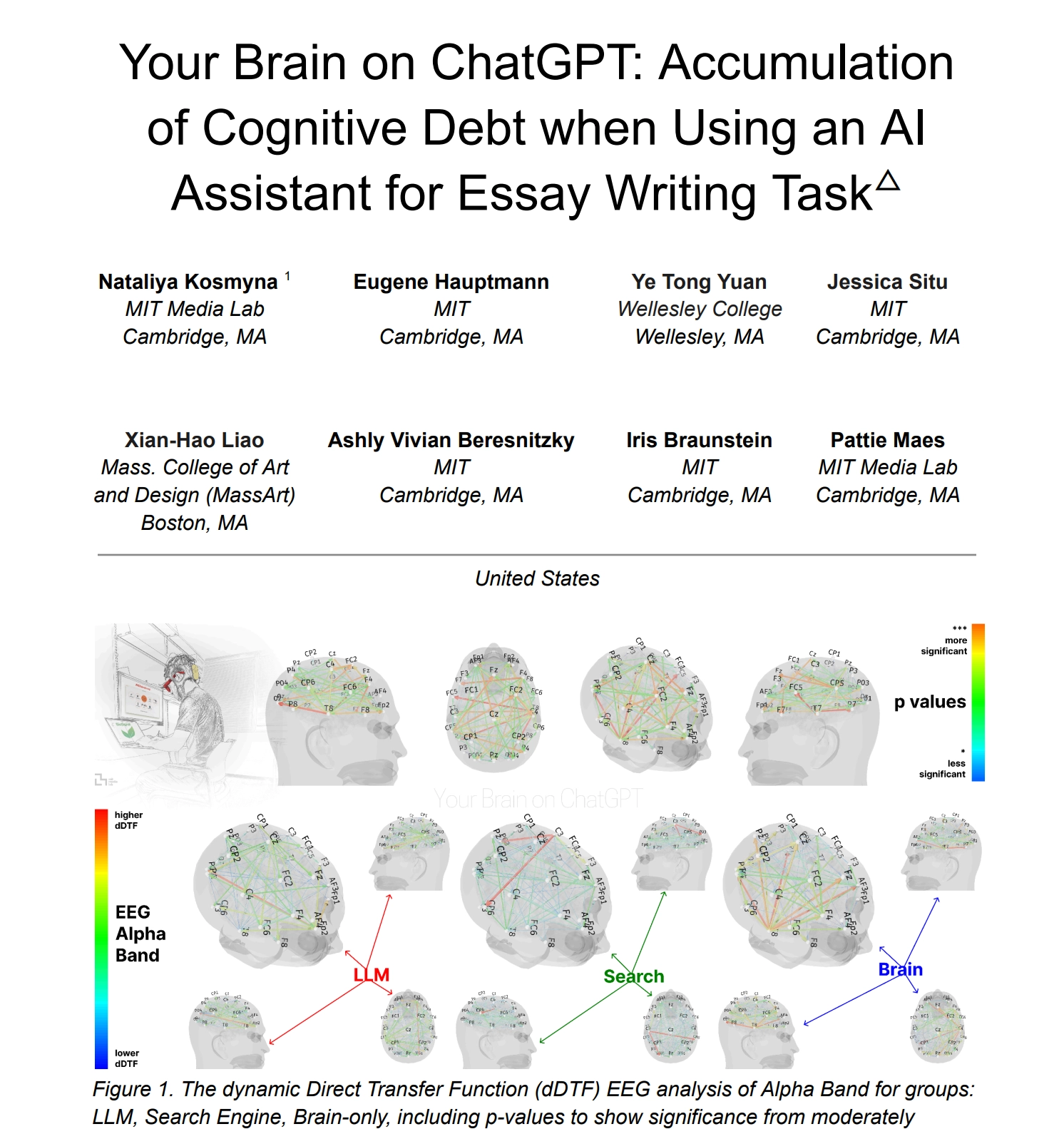 연구진은 참가자들을 세 그룹으로 나눴습니다: LLM 사용 그룹, 검색엔진 그룹, 도구 없이 뇌만 쓰는 그룹. 각각 에세이를 작성하게 한 후 뇌파와 행동을 분석했습니다.