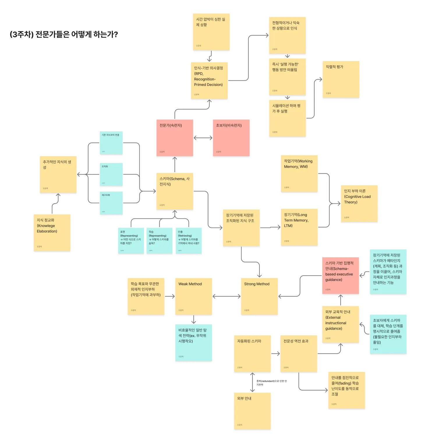 플래시카드로 외운 개념들을 내 언어로 재구성하는 겁니다. 각 개념이 어떻게 연결되는지, 내 상황에 어떻게 적용할 수 있는지를 그림으로 그립니다.