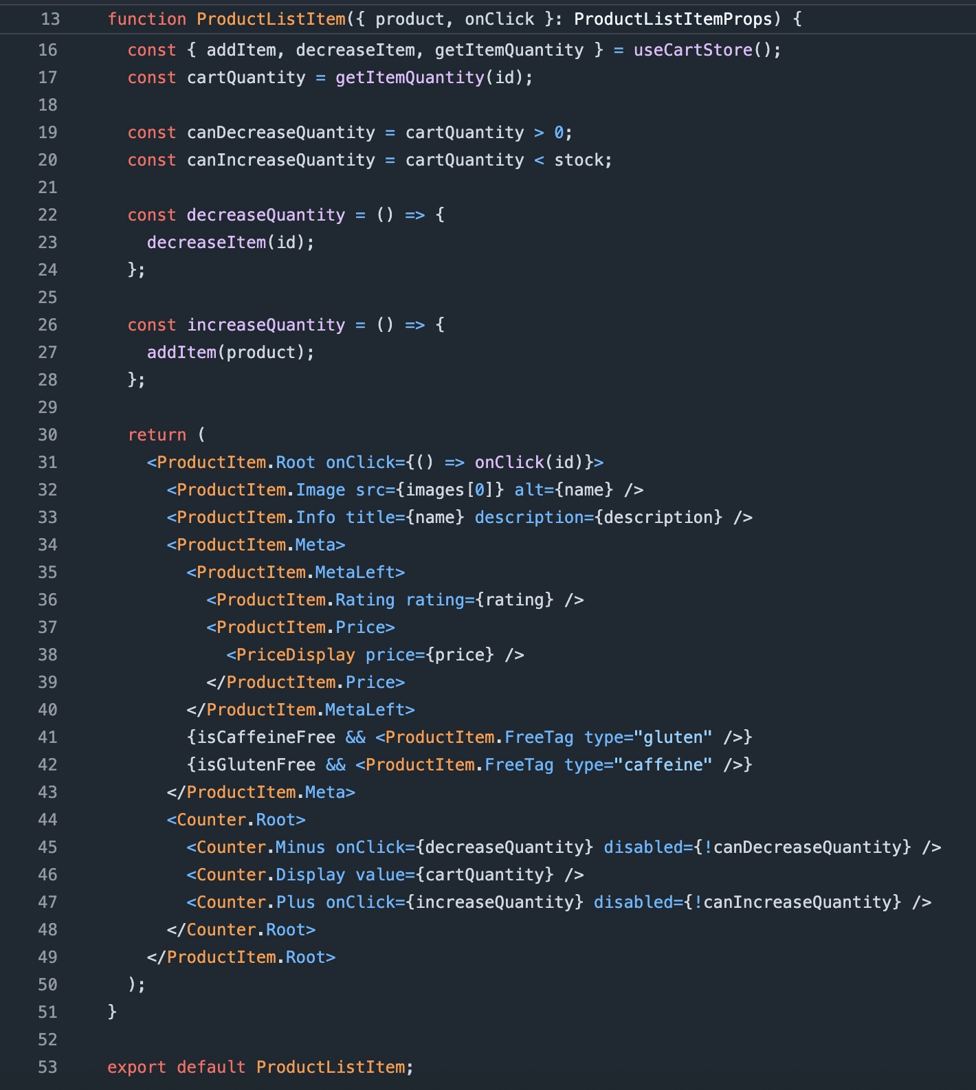 상품 카드 컴포넌트는 아래 스크린샷의 ProductListItem에 구현되어 있습니다.