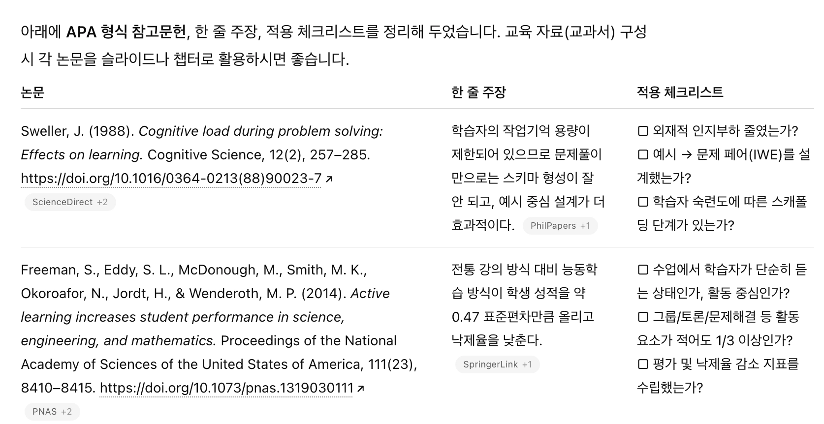 ChatGPT가 논문 목록을 표로 정리해줍니다.