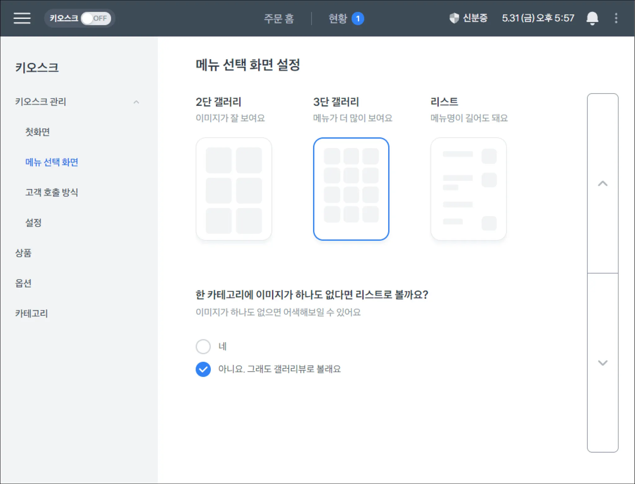 키오스크 관리에서 메뉴 노출 방식 설정하기