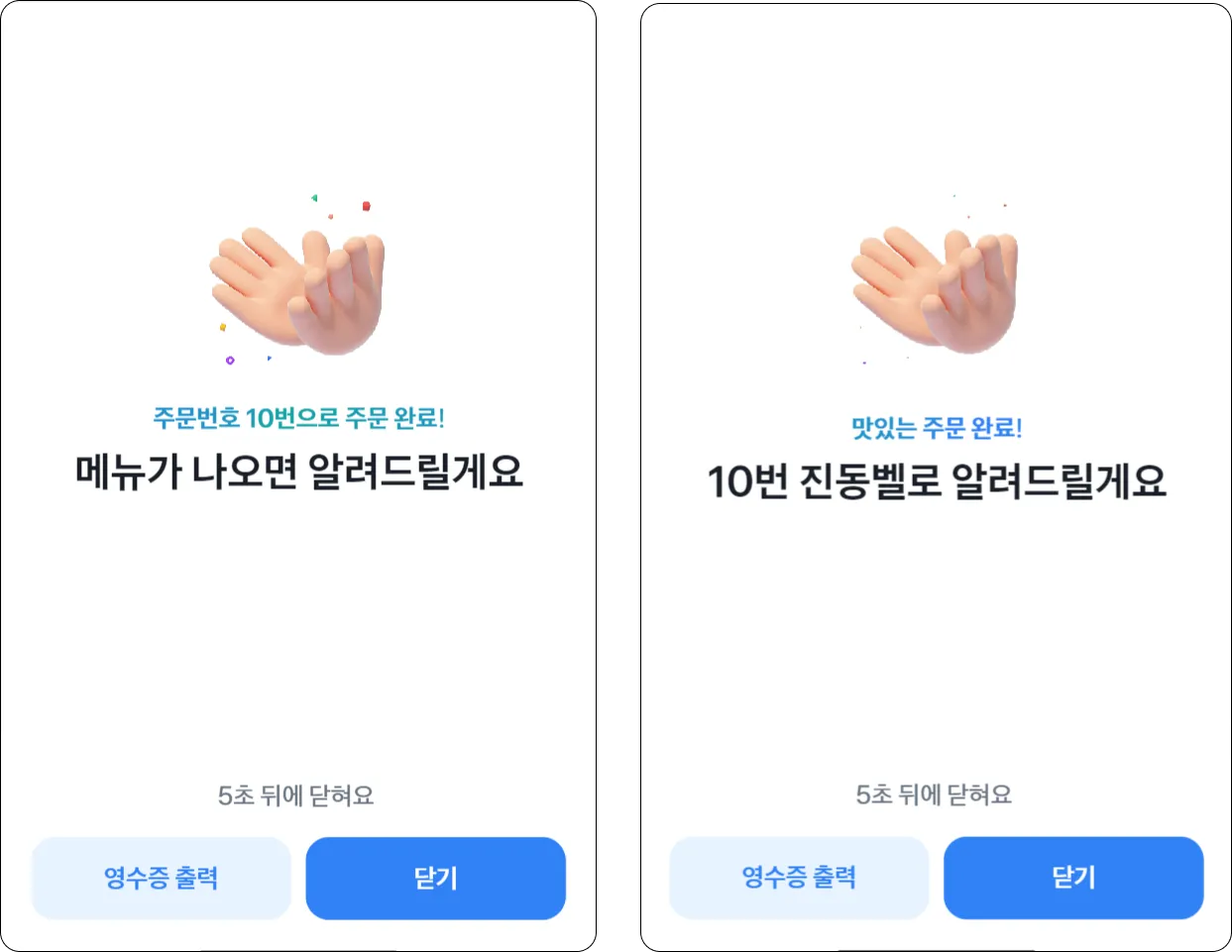 결제가 완료 되면 입력한 번호, 또는 진동벨로 알려드려요.