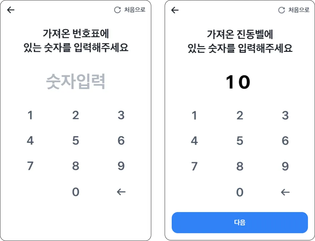 가져온 번호표 또는 진동벨 숫자를 입력 해주세요.