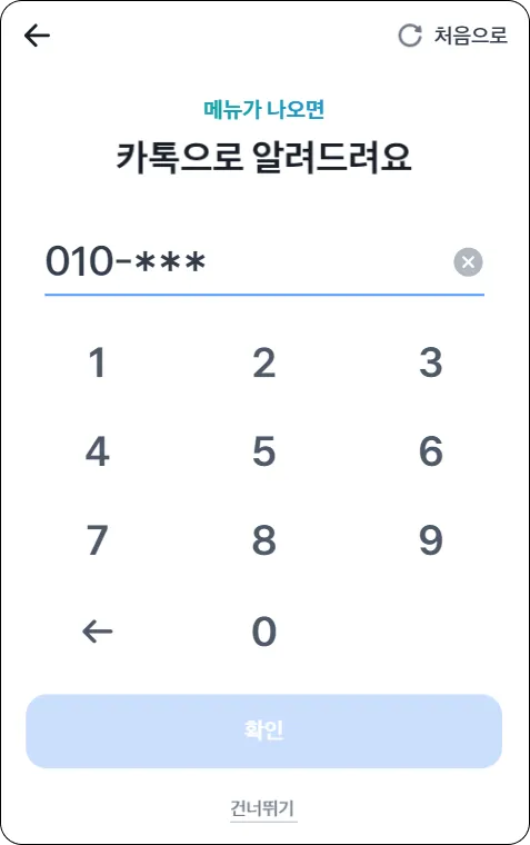 메뉴가 나오면 입력한 휴대폰 번호로 알려드려요.