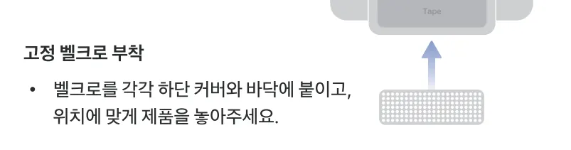벨크로를 하단 커버 부분과 설치 매대에 각각 붙이고, 위치에 맞도록 단말기를 놓아주세요.